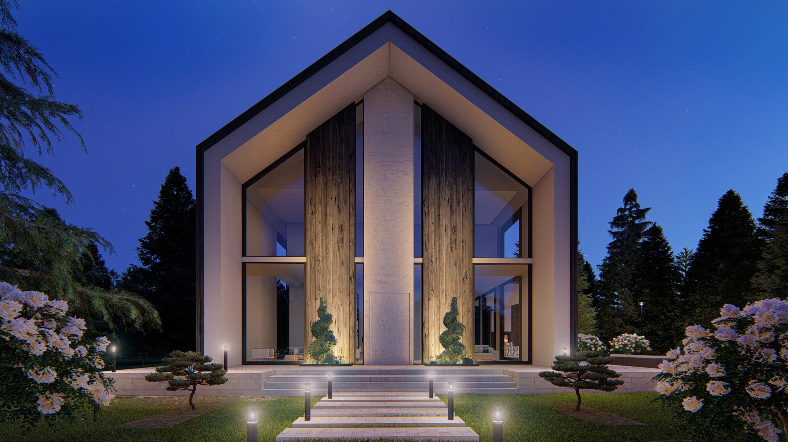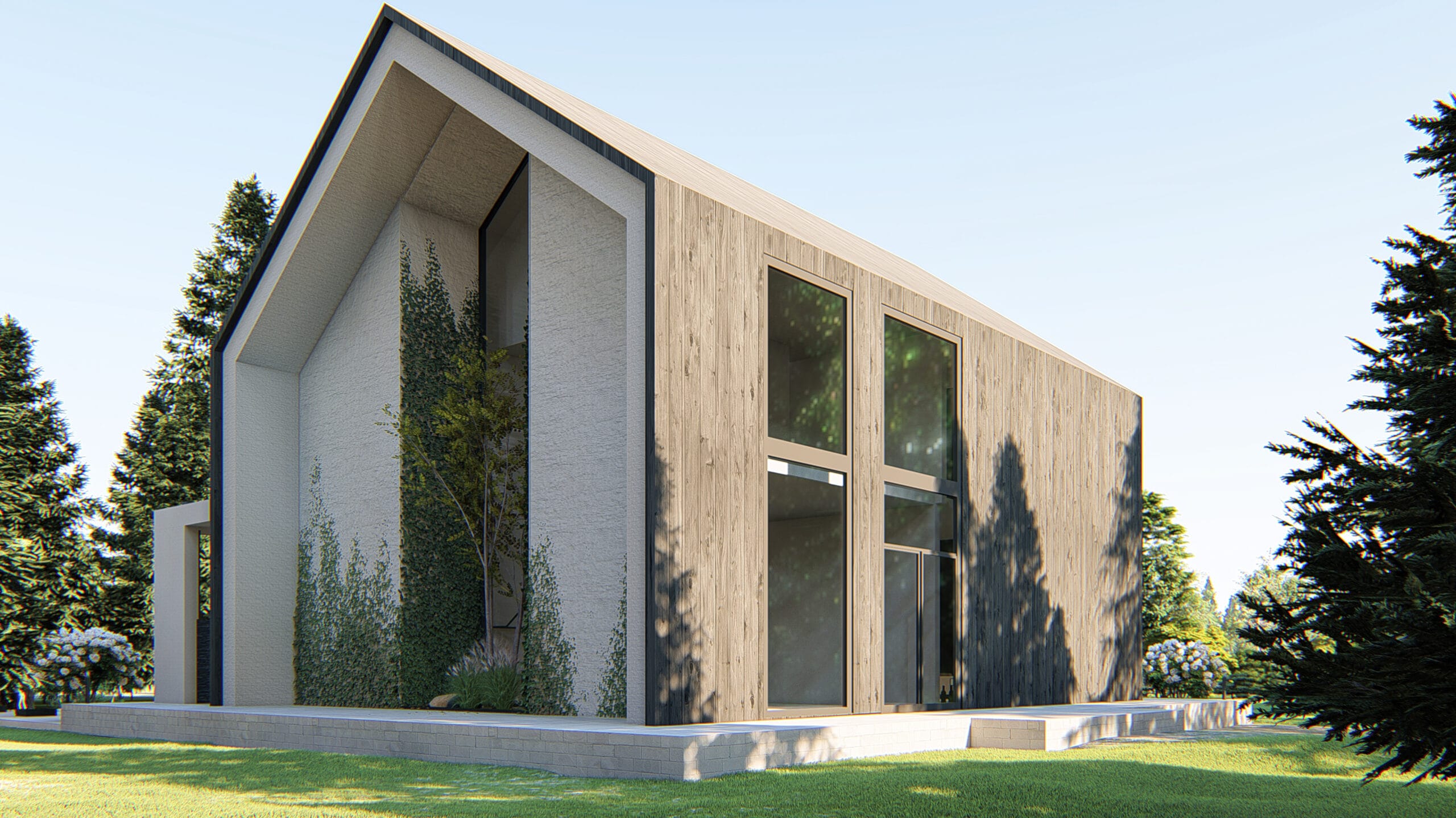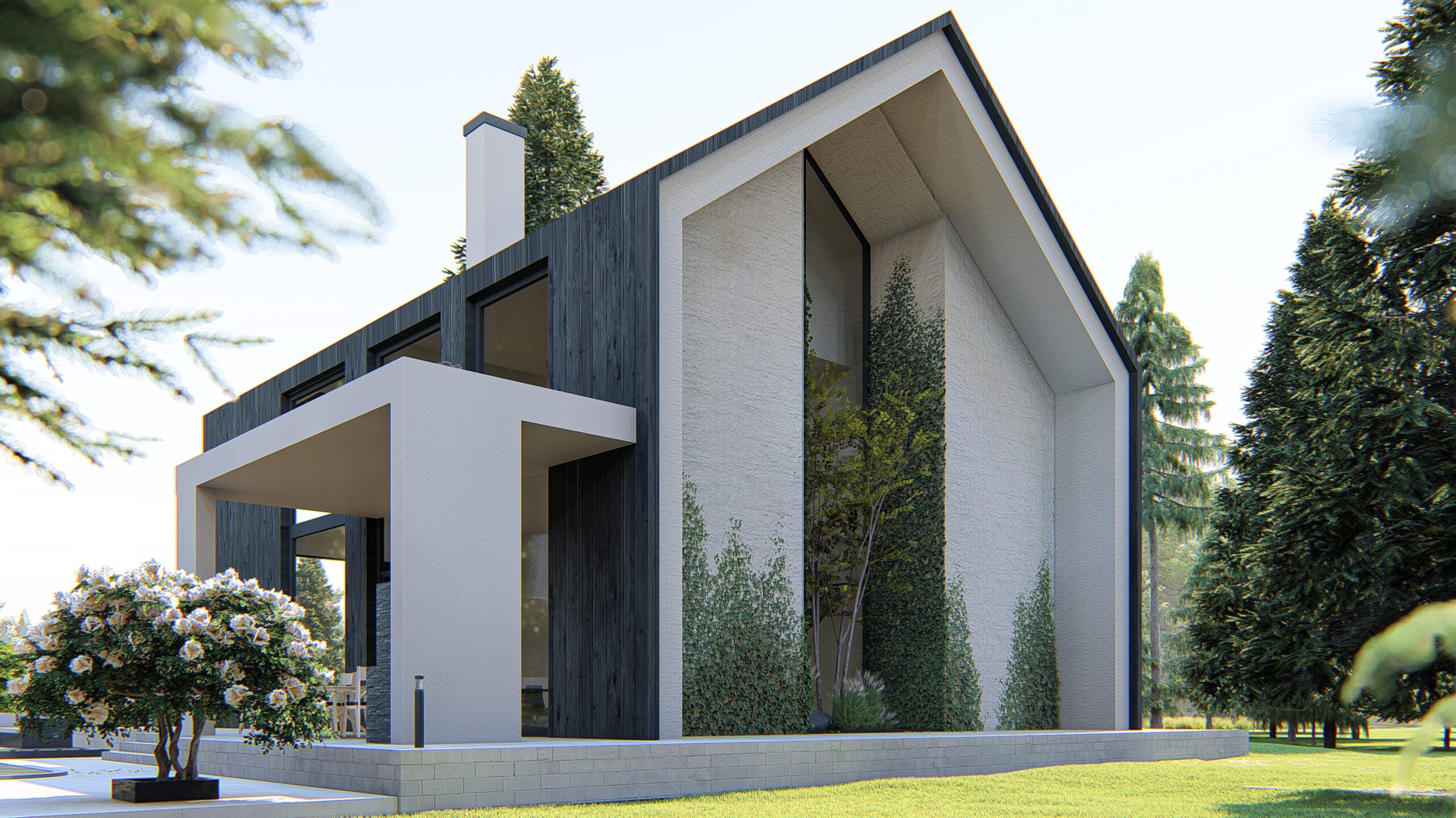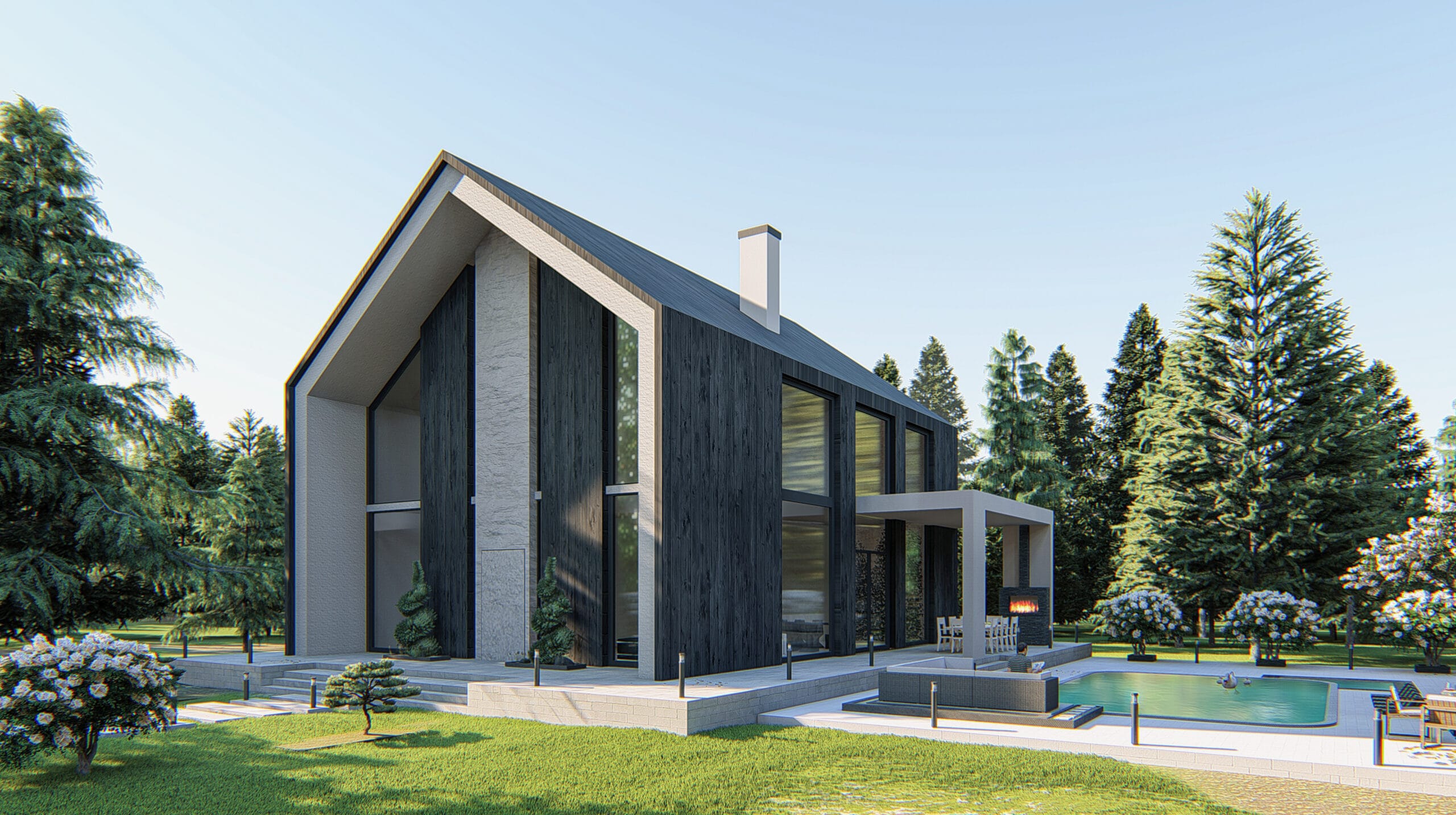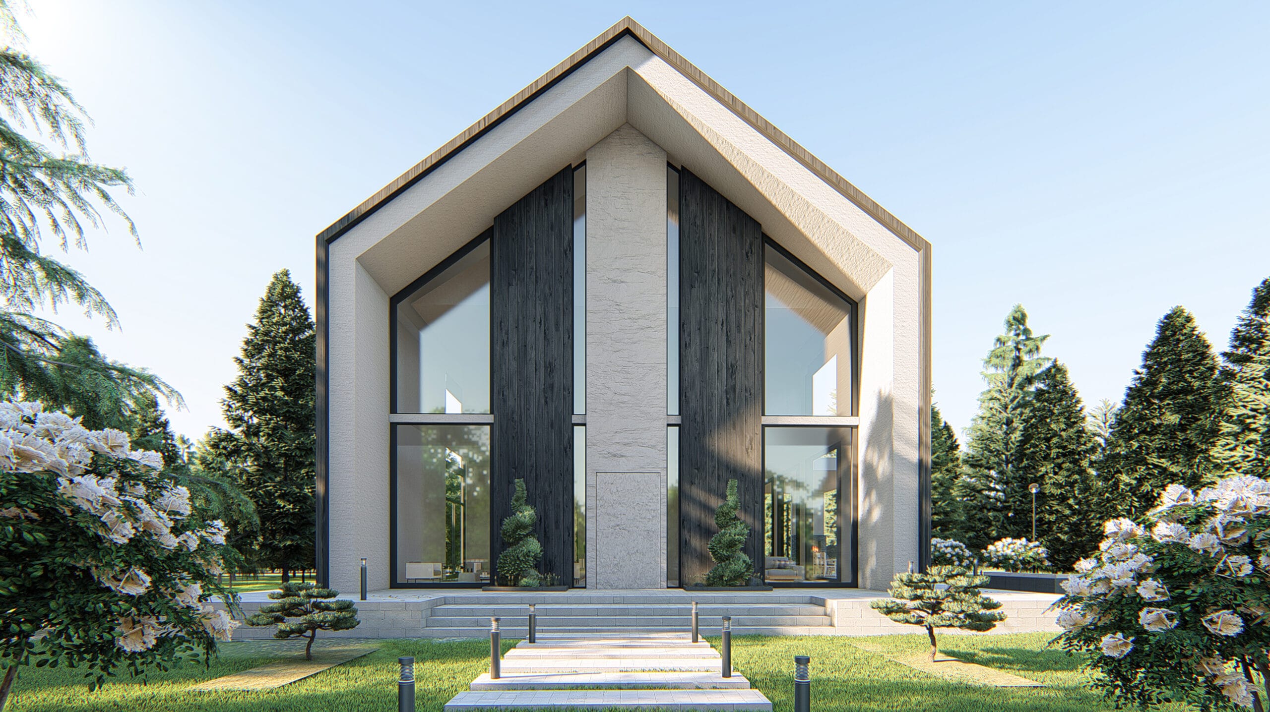 The main concept behind the design is to harmoniously blend the house with its natural surroundings by using locally inspired, natural materials. A key environmental solution is the use of the traditional Japanese technique known as Shou Sugi Ban a method of charring wood to enhance its durability, making it resistant to insects, water, and decay.