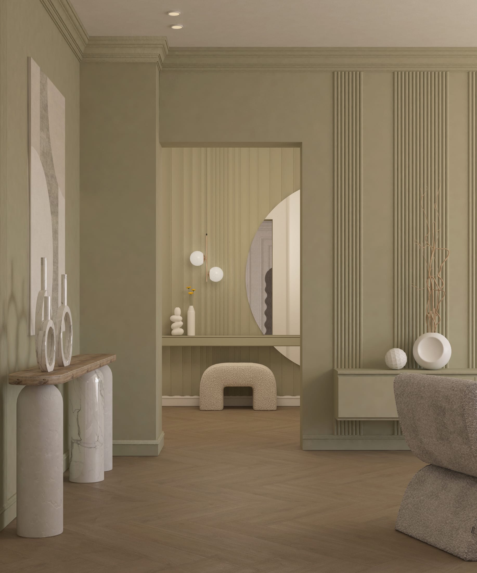 Throughout the apartment, natural light, organic textures, and carefully selected design elements come together to express a balance of comfort and sophistication a space that feels both beautifully composed and deeply livable.